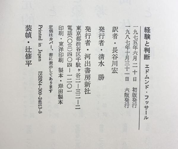経験と判断 河出書房新社 エドムント フッサール