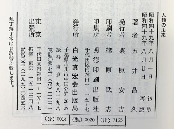 人類の未来 白光真宏会出版本部 五井昌久