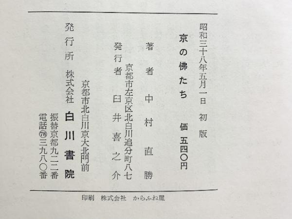 京の仏たち 白川書院 中村 直勝