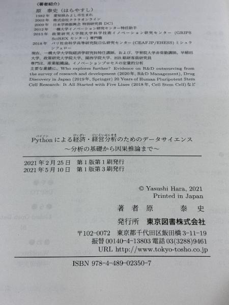 Pythonによる経済・経営分析のためのデータサイエンス~分析の基礎から因果推論まで 東京図書 原 泰史