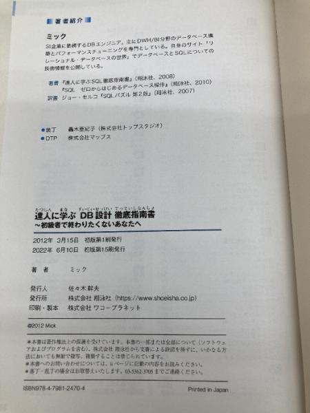 【※カバー無し】達人に学ぶDB設計 徹底指南書 初級者で終わりたくないあなたへ 翔泳社 ミック