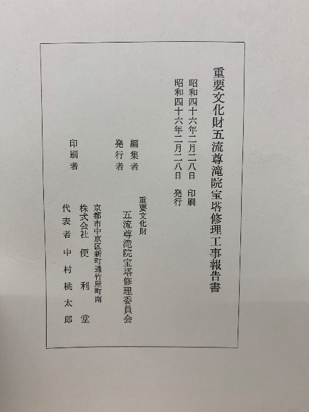 • 出版社 重要文化財五流尊滝院宝塔修理委員会