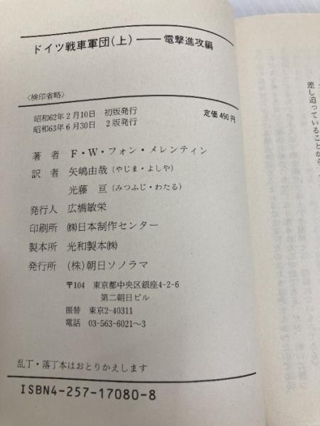 ドイツ戦車軍団 上 電撃進攻編 (文庫版航空戦史シリーズ 80) 朝日ソノラマ F.W.フォン・メレンティン