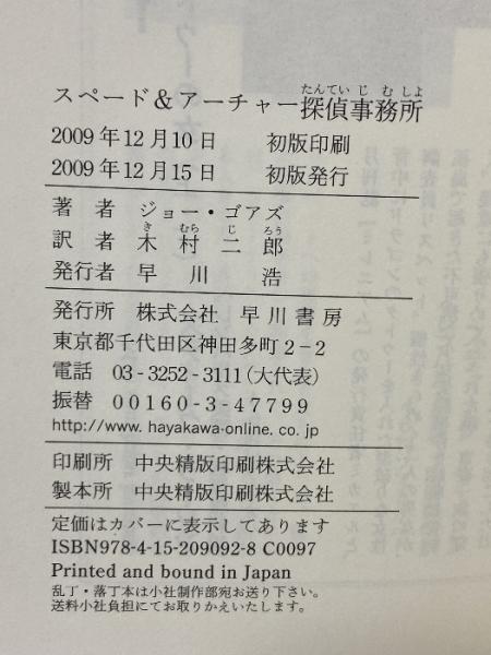 スペード&アーチャー探偵事務所 早川書房 ジョー ゴアズ