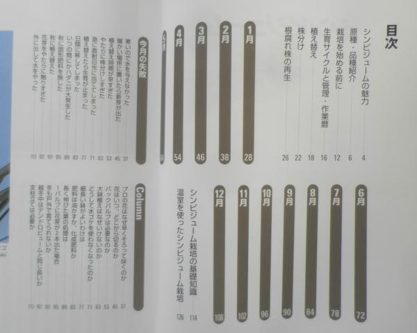 よくわかる栽培12か月 シンビジュームの魅力 原種・品種紹介 栽培を始める前に 生育サイクルと管理・作業暦 植え替え 株分け 根腐れ株の再生 1月~12月 シンビジューム栽培の基礎知識 温室を使ったシンビジューム栽培 今月の失敗 Column