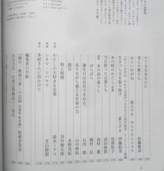ちゃんと食べてゆくために わたしが台所に立つ理由 わたしの安早旨レシピ 自分らしい暮らしを見つけたい いのちの終わり方を考える わたしの仕事/盲導犬歩行指導員 「戦中・戦後の暮しの記録拾遺集」掲載作4編 紫外線による眼のダメージにご注意を わたしの大好きな音楽/清水ミチコ 他