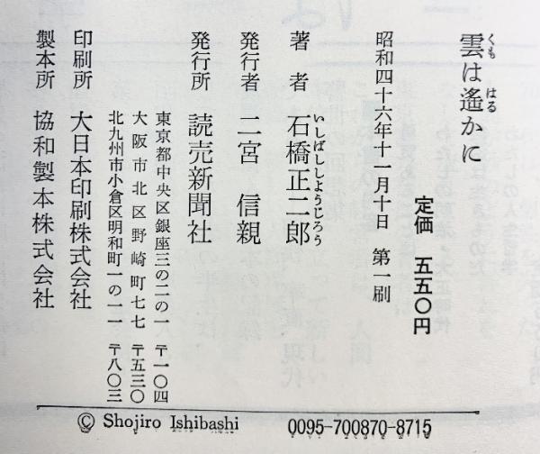 雲は遙かに 読売新聞社 石橋 正二郎