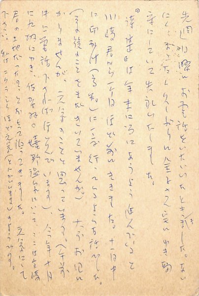 • 解説 宮崎八十子宛 ペン書 12行 昭45・12・4(消印) 「宮崎讓詩集」(昭和46年1月30日発行)の出版についてか。「『詩集』は年末に間にあうよう進んでいると川崎君から一ヶ月ほど前にききました。十一月中に印刷所(高知)に一度行っているような話でした。(その後のことをまだきいていませんが)」。(発信地)鷺宮(受信地)三鷹市井口 #八木書店近代自筆物/3.葉書類 #94号近代文学特輯 code08965 ※自筆物につきましては、毎月25日前後に新蒐品を追加しております。PDF形式で御覧になりたい方は https://company.books-yagi.co.jp/archives/news/10928 を参照ください。