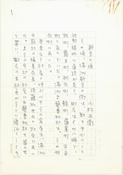 • 解説 『新京の頃』 ペン書 200字詰原稿用紙13枚完 「永井龍男全集1巻月報」(講談社・昭56)掲載。満州文藝春秋に勤務。(種別)回想 #八木書店近代自筆物/1.草稿類 #八木古書2025年3月新蒐 code09483 ※自筆物につきましては、毎月25日前後に新蒐品を追加しております。PDF形式で御覧になりたい方は https://company.books-yagi.co.jp/archives/news/10928 を参照ください。94号目録(R7.1)以後の追加は「#八木古書2025」で検索できます。