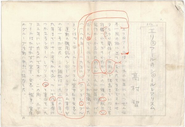 • 解説 『エリュアールのシュールレアリスム』 鉛筆 400字詰原稿用紙19枚完 エリュアールの概説。(種別)紀行 #八木書店近代自筆物/1.草稿類 #八木古書2025年11月新蒐 code09994 ※自筆物につきましては、毎月25日前後に新蒐品を追加しております。PDF形式で御覧になりたい方は https://company.books-yagi.co.jp/archives/news/10928 を参照ください。94号目録(R7.1)以後の追加は「#八木古書2025」で検索できます。