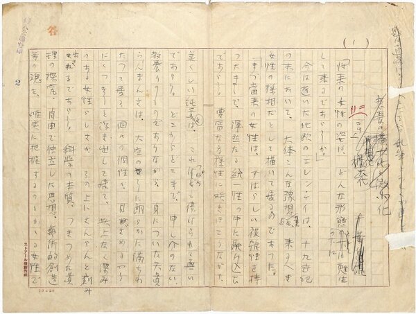 • 解説 『恋愛の拡大化と微小化』冒頭 ペン書 400字詰原稿用紙2枚未完 破れ 薄紙貼付 「婦人公論」掲載。(種別)資料 #八木書店近代自筆物/1.草稿類 #94号近代文学特輯 code08892 ※自筆物につきましては、毎月25日前後に新蒐品を追加しております。PDF形式で御覧になりたい方は https://company.books-yagi.co.jp/archives/news/10928 を参照ください。