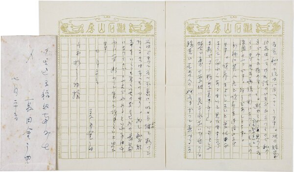 • 解説 山本松之助宛 ペン書 漱石山房用箋2枚20行 封筒付 大3・7・22(消印) 「こころ」完結後の小説欄について。「私の小説は八月へかゝります。次の短編作家は一々御相談のひまがなかつたので私の方でみんな極めました。断わられるかも知れないと思つてゐたらまづみんな承諾の形になつたのもその原因の一つです。何うぞあしからず」。(発信地)牛込区早稲田南町(受信地)朝日新聞 #八木書店近代自筆物/2.書簡類 #94号近代文学特輯 code08327 ※自筆物につきましては、毎月25日前後に新蒐品を追加しております。PDF形式で御覧になりたい方は https://company.books-yagi.co.jp/archives/news/10928 を参照ください。
