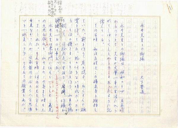 • 解説 『永井先生との御縁』 ペン書 400字詰原稿用紙9枚 切貼 「永井龍男全集4巻月報」(講談社・昭56)掲載。浄書二種。大下豊道は永井龍男、久米正雄らの菩提寺である、「瑞泉寺」の住職。(種別)回想 #八木書店近代自筆物/1.草稿類 #八木古書2025年3月新蒐 code09474 ※自筆物につきましては、毎月25日前後に新蒐品を追加しております。PDF形式で御覧になりたい方は https://company.books-yagi.co.jp/archives/news/10928 を参照ください。94号目録(R7.1)以後の追加は「#八木古書2025」で検索できます。
