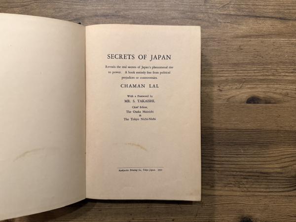 SECRETS OF JAPAN Reveals the real secrets of Japan's phenomenal rise to power. A book entirely free from political prejudices or controversies. With a Foreword by MR. S. TAKAISHI, Chief Editor, The Osaka Mainichi & Tokyo Nichi-Nichi