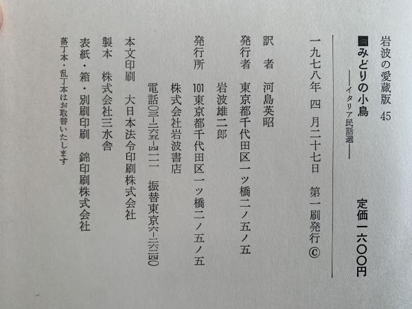 みどりの小鳥 イタリア民話選 岩波の愛蔵版