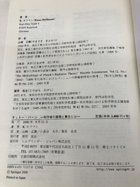 オットー・ハーン: 科学者の義務と責任とは (World Physics Selection:Biography) シュプリンガー・ジャパン K. ホフマン
