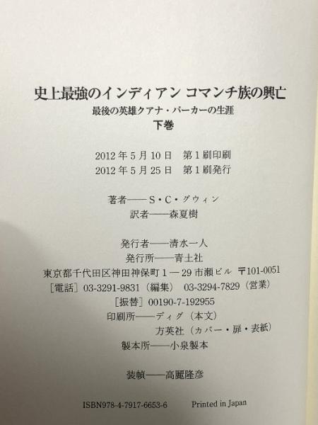 史上最強のインディアン コマンチ族の興亡 下巻 最後の英雄クアナ・パーカーの生涯 青土社 S・C・グウィン
