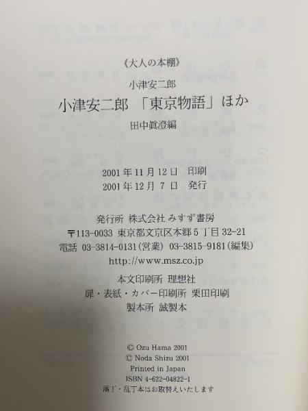 小津安二郎東京物語ほか (大人の本棚) みすず書房 小津 安二郎
