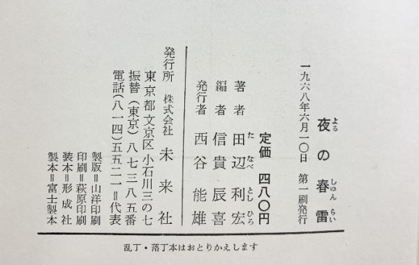 夜の春雷―一戦没学徒の戦線日記 未来社刊 田辺利宏