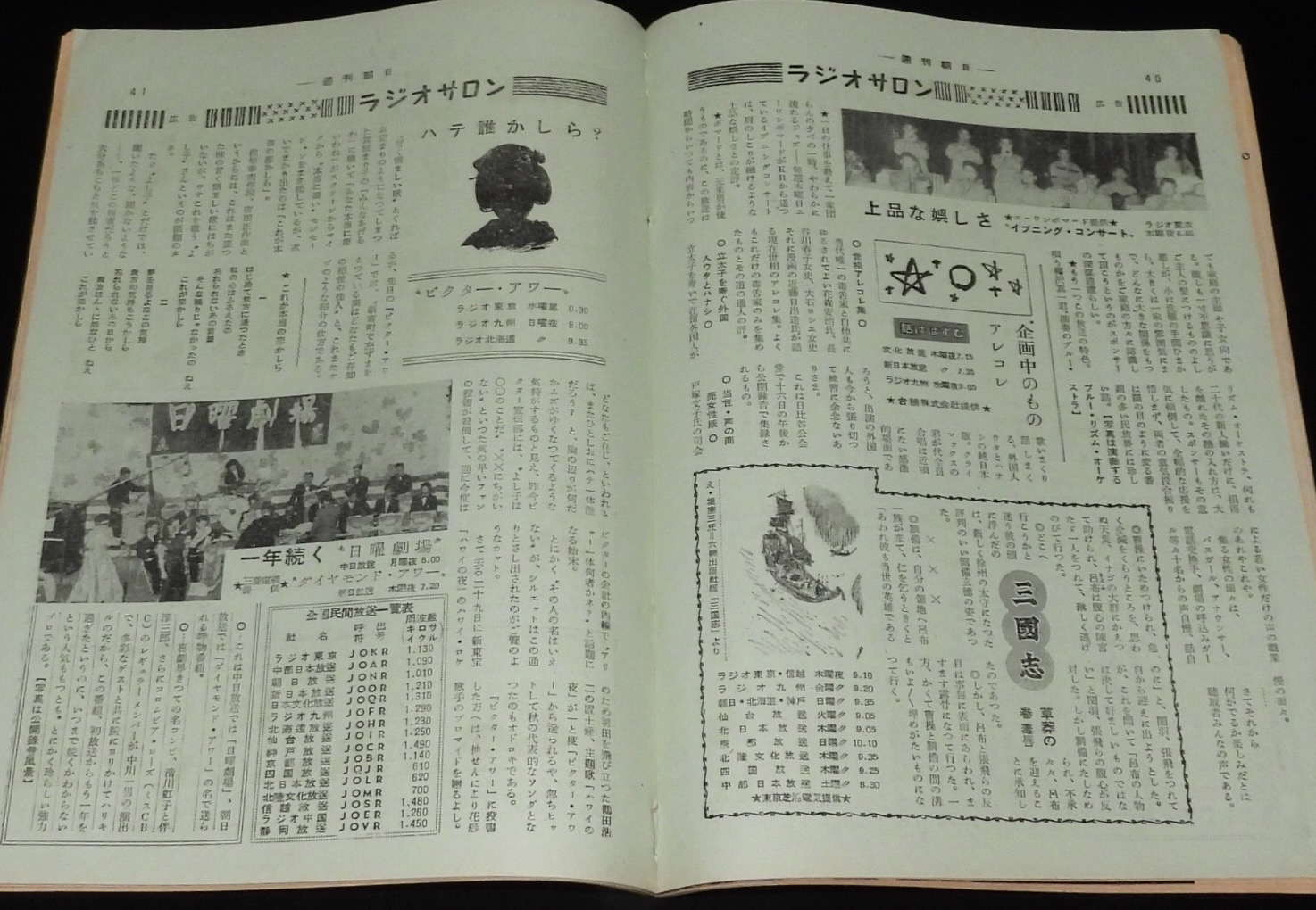 「ラジオサロン:イブニング・コンサート/話ははずむ/三国志/ビクター・アワー/日曜劇場/ほか」