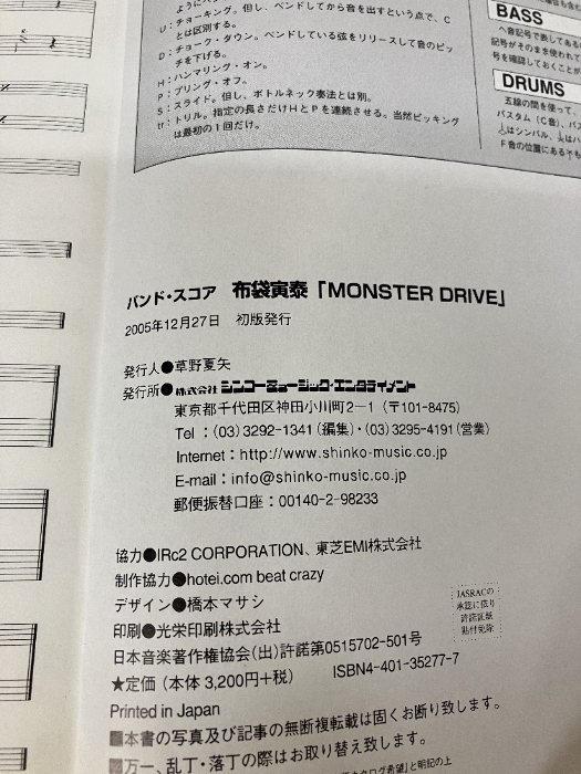 バンドスコア 布袋寅泰/MONSTER DRIVE (バンド・スコア) シンコーミュージック