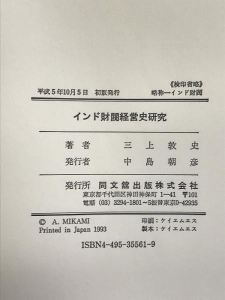 インド財閥経営史研究 同文舘出版 三上 敦史