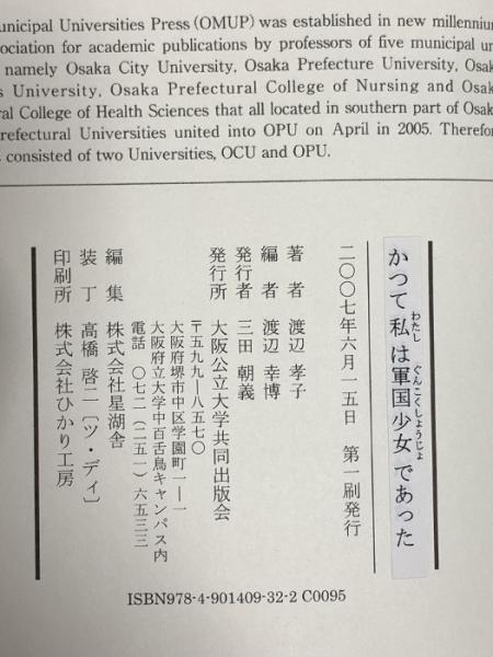 かつて私は軍国少女であった 大阪公立大学共同出版会 渡辺 孝子