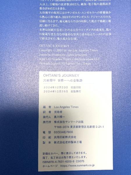 OHTANI'S JOURNEY 大谷翔平 世界一への全軌跡 サンマーク出版 Los Angeles Times