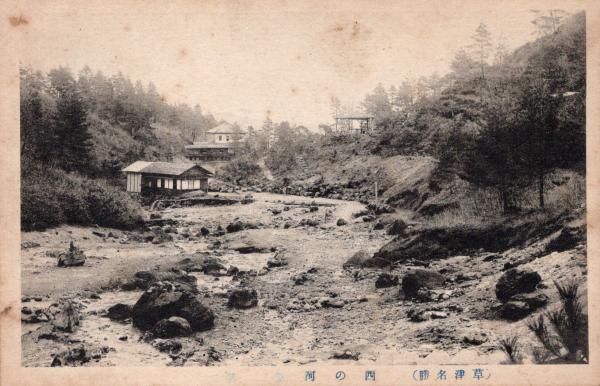 • 解説 N26010672〇戦前絵葉書○群馬県 草津温泉名勝 西の河(西の河原)古写真○和本古書古文書