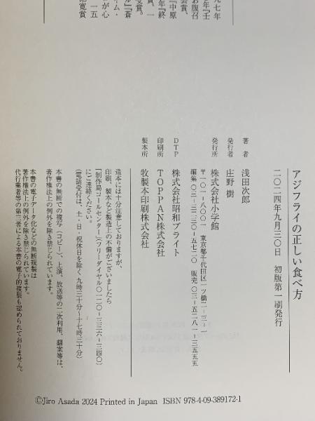 アジフライの正しい食べ方 小学館 浅田 次郎