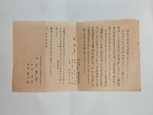 • 解説 限定100部 毛筆署名落款入 和紙カバ 四季社。本文総和紙装。和紙カバー付。署名入100部本。扉頁に雅印あり。別紙刊行案内付。概ね良好な保存。レターパックプラス便で発送させていただきます。手渡し配達、送料は全国一律600円です。