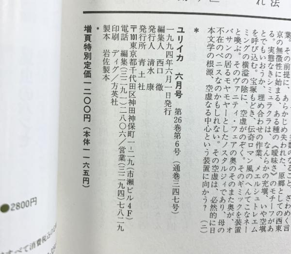 「ユリイカ」1994年6月号 詩と批評 増頁特集:島田雅彦 青土社
