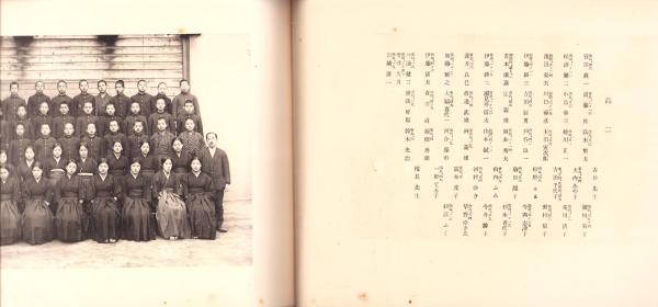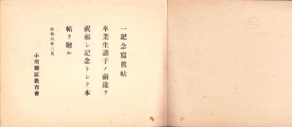 • 解説 B5判、横本、活字5頁、写真7頁、現在先生名簿1頁、左下角水ぬれ