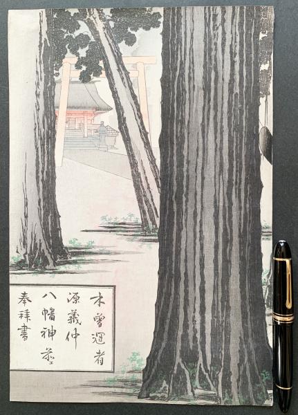 歌川豊宣 木版画 錦絵三枚続『源義仲八幡宮願書之図』