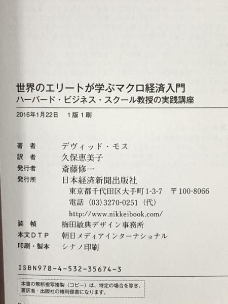 世界のエリートが学ぶマクロ経済入門 ―ハーバード・ビジネス・スクール教授の実践講座 日本経済新聞出版 デヴィッド・モス