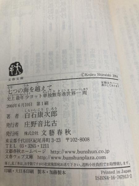 史上最年少ヨット単独無寄港世界一周 七つの海を越えて (文春文庫 し 41-1) 文藝春秋 白石 康次郎