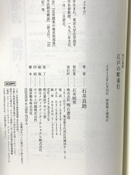 江戸の町奉行 (明石選書) 明石書店 石井 良助