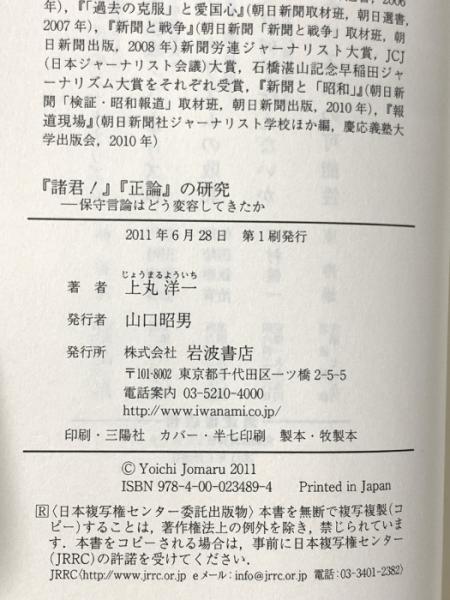 『諸君!』『正論』の研究――保守言論はどう変容してきたか 岩波書店 上丸 洋一