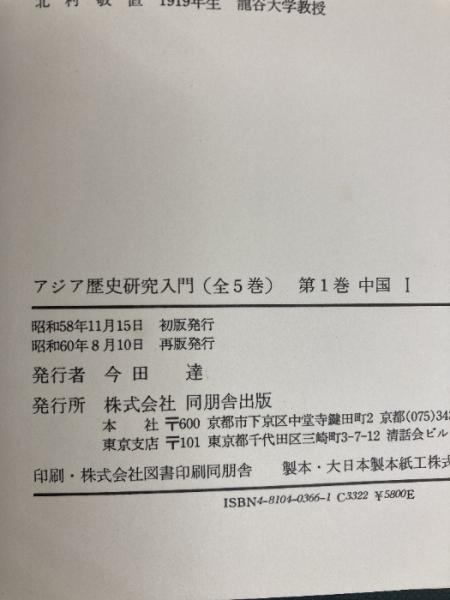 アジア歴史研究入門 1 中国1 角川書店(同朋舎) 島田 虔次
