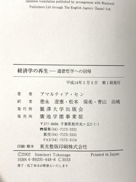 経済学の再生: 道徳哲学への回帰 麗澤大学出版会 アマルティア セン