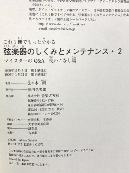 これ一冊でもっと分かる弦楽器のしくみとメンテナンス〈2〉マイスターのQ&A 使いこなし篇 音楽之友社 佐々木 朗