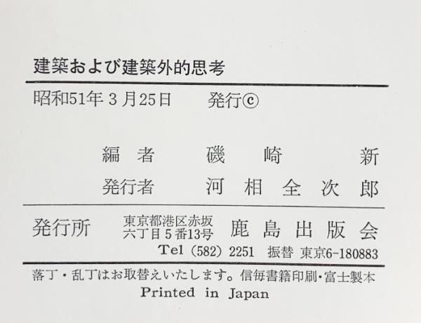 建築および建築外的思考 鹿島出版 編:磯崎新