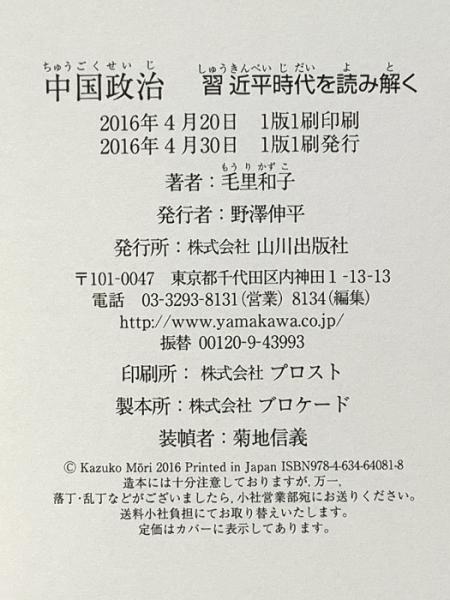 中国政治: 習近平時代を読み解く 山川出版社 毛里 和子
