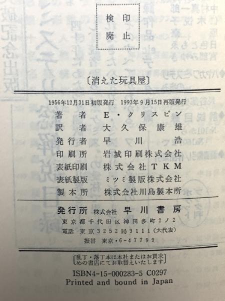 消えた玩具屋 (ハヤカワ・ポケット・ミステリ 283) 早川書房 エドマンド・クリスピン