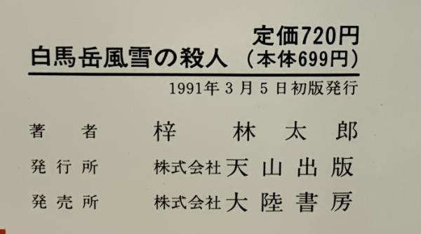 白馬岳風雪の殺人 (TENZAN NOVELS) 天山出版 梓 林太郎