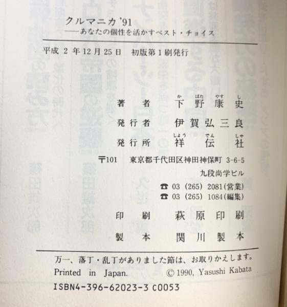 クルマニカ ’91: 自動車最新事情 あなたの個性を活かすベスト・チョイス (ノン・ライブ) 祥伝社 下野 康史
