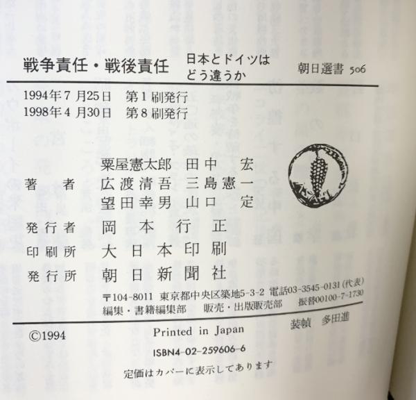 戦争責任・戦後責任: 日本とドイツはどう違うか (朝日選書 506) 朝日新聞出版 粟屋 憲太郎