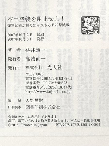 本土空襲を阻止せよ!: 従軍記者が見た知られざるB29撃滅戦 潮書房光人新社 益井 康一