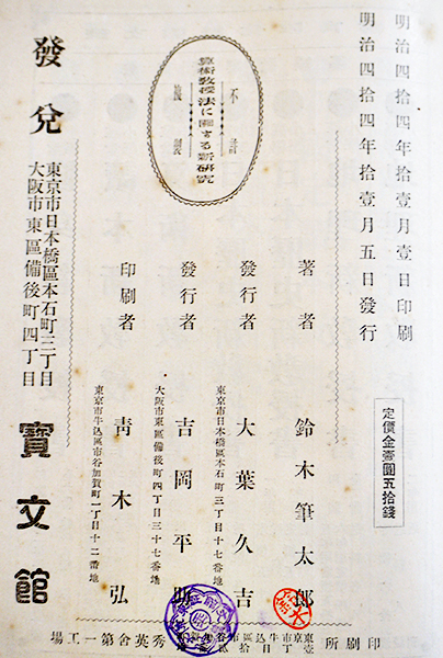 算術教授法に関する新研究 鈴木筆太郎著 A5判初版490p 寳文館 明治44年