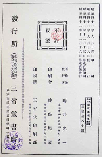 教師教科最近地理学-外国地誌 亀井忠一著作発行 A5判206p 三省堂 明治42年